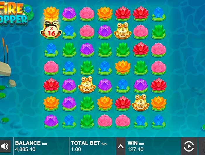 Push Gaming создала впечатляющий визуальный дизайн: фон слота Фаер Хоппер представляет собой живописный пруд с переливающимися на воде искрящейся водной глади цветами и кувшинками. Символы выполнены в яркой, детализированной стилистике, создавая ощущение волшебной атмосферы. Музыкальное сопровождение дополняет общую картину, добавляя игре расслабляющее, но одновременно захватывающее настроение.